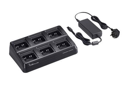 Icom BC-214N 27 is a Multi Battery Charger for ICOM PTT Radio batteries. Charges up to six Icom BP-300 7.2 V/2200 mAh batteries, with or without transceivers at the same time. (BSC0157S, AC Adapter supplied) 6-Gang Battery Charger